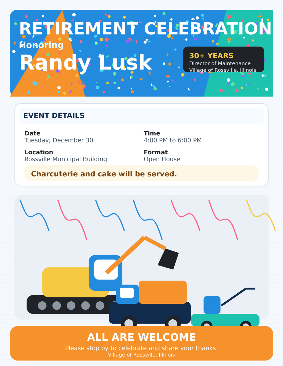 The Village of Rossville staff strive to keep you updated on all matters related to your community. If you do not find the information you need, please contact our office and we will gladly assist you! Subscribe today and receive up to the minute News and important Alerts delivered straight to your inbox.