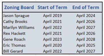 The Zoning Board reviews proposed amendments to zoning ordinances, site plans and plat applications.